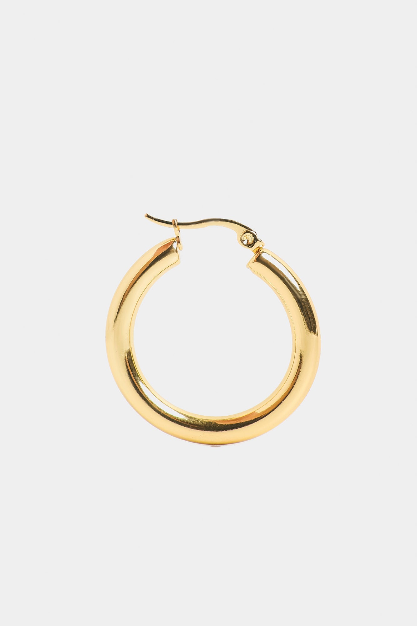 These earrings showcase a solid golden hoop with a smooth, rounded finish, combining durability with a classic, polished aesthetic. Their expert design makes them a versatile choice for refined, everyday wear.